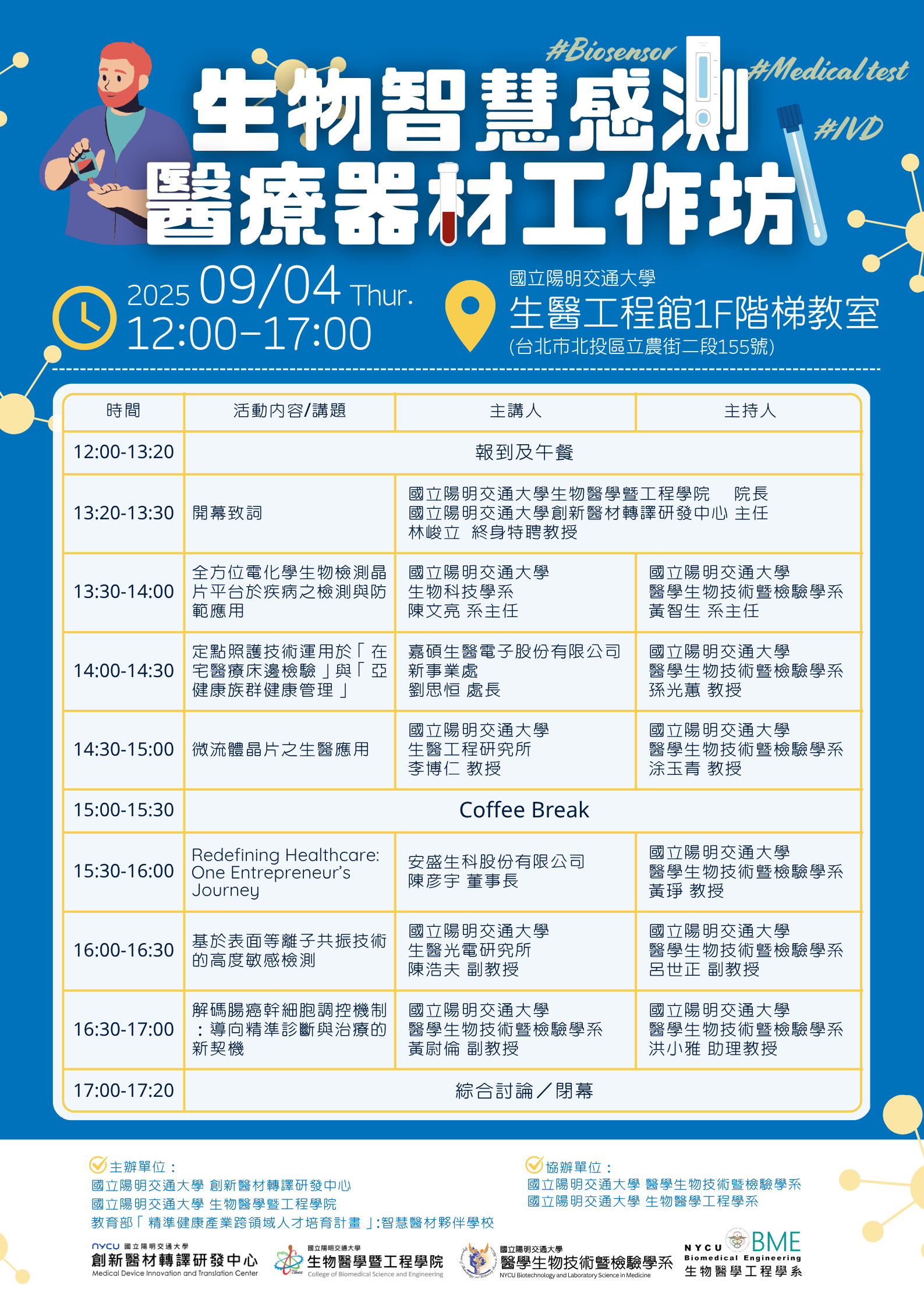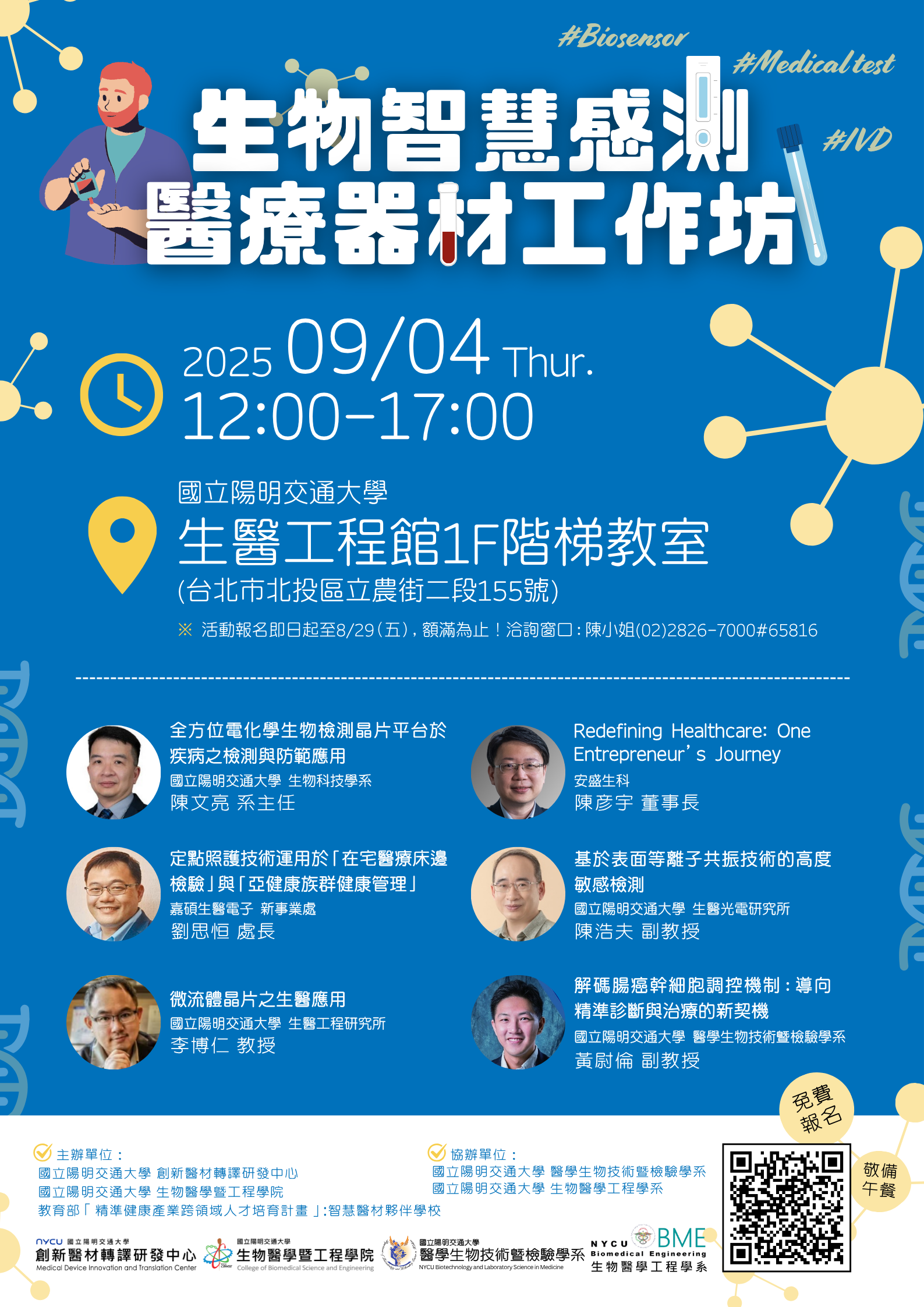 與談陣容|陽明交大醫學生物技術暨檢驗學系、陽明交大生物科技學系、陽明交大生醫工程研究所、產業資深專家聯手主講